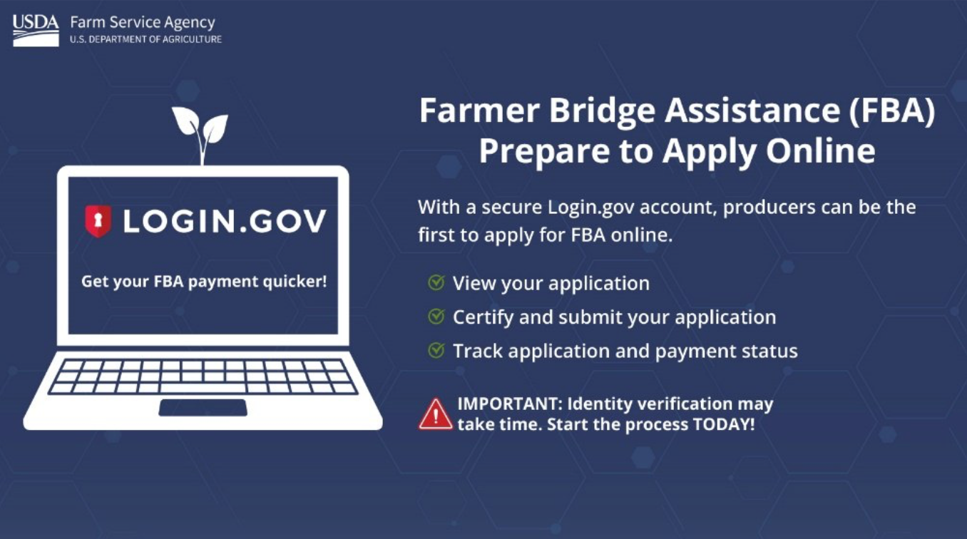 Be the first to apply for the Farmer Bridge Assistance (FBA) Program online with a secure Login.gov account!